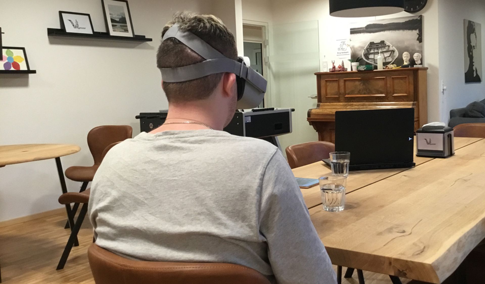 Peter har autisme og bor på botilbuddet Vangeleddet i Greve Kommune. Tidligere kunne han ikke selv gå til hæveautomaten, men måtte have støtte af en pædagog. Men med VR-briller på kan han gøre det virtuelt i et trygt miljø og gradvist vænne sig til det.