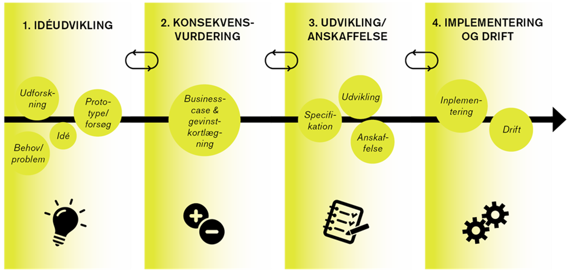 2. Organisér et digitaliseringsprojekt på den måde, der passer til dets natur og kompleksitet. Enkle, overskuelige forløb kan ofte styres med klassiske projektmetoder, mens du i mere eksperimenterende projekter kan have gavn af at arbejde med prøvehandlinger og i kortere cykler.