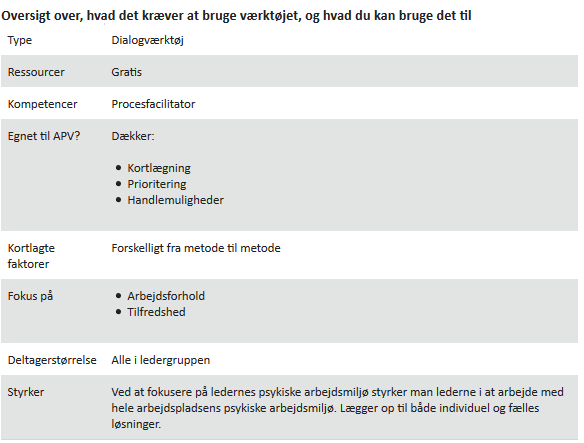 'Dialogkonference' er et værktøj, der arbejder bredt med psykisk arbejdsmiljø.